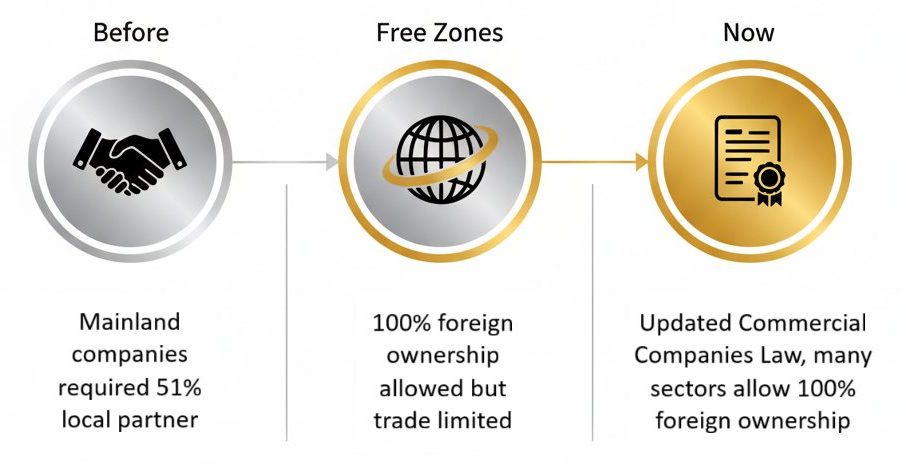 Before diving into the specifics, it’s helpful to get a grasp on how foreign ownership has evolved in the UAE. Traditionally, foreign investors needed a local partner to hold at least 51 percent of the shares in a mainland company.